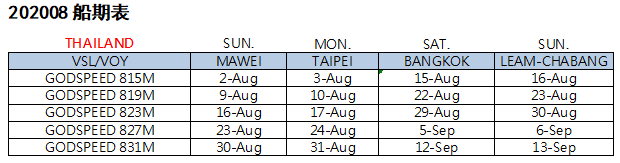 新增泰国精品航线,提供优质台湾中转服务,直达港口曼谷、林查班, 承接特种柜/冻柜,箱源充足,可满足不同客户需求,随着新航线的引入,WHL将提供更优质、可靠、高效、准时的服务,真诚期待您的赐载。